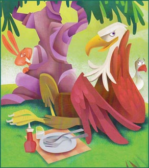 عقاب گفت: « این حرف ها را فراموشکن. فعلا خیلی گرسنه ام. پدر بزرگم به من وصیت کرده هر وقت کبکی را دیدی او را بخور. من هم می خواهم به وصیت او عمل کنم. »