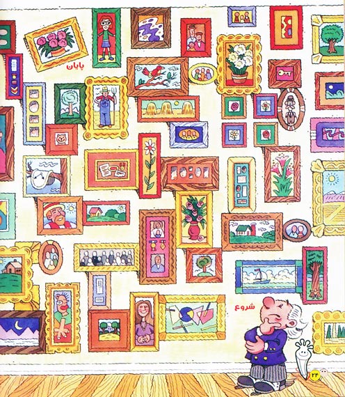 ولی مشکل چیز دیگه است. اون هم پرنده ی دست آموز منه که می ره و رو تابلو ها می شینه و اونا رو کج می کنه. منم با این سن و سالم نمی تونم برم بالای نردبون. اگه می شه مسیر رسیدن به این تابلو رو نشونم بدید. لطفاً.